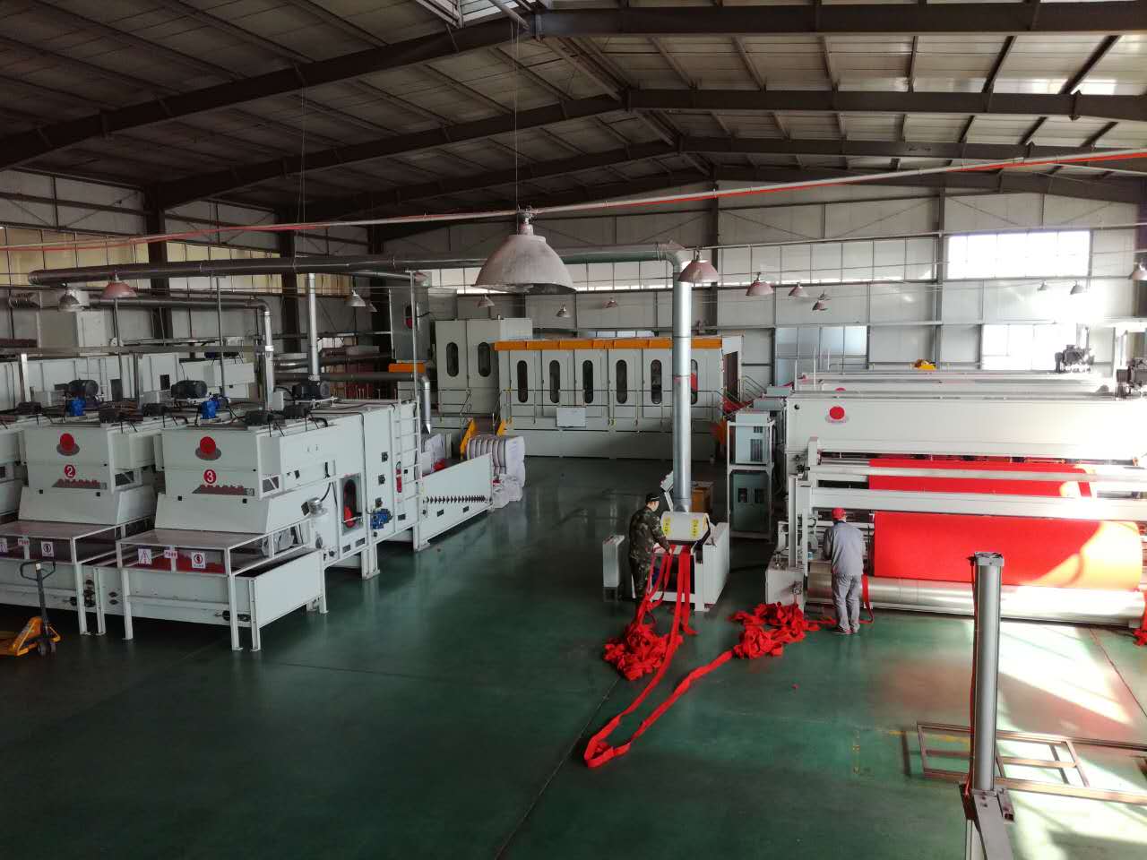 公司總投資1億余元,首期工程已完成投資3000萬元,F(xiàn)已建設(shè)標(biāo)準(zhǔn)廠房15000余平方米、引進(jìn)多條無紡布生產(chǎn)線。其中,針刺無紡線4條、起絨機(jī)兩臺(tái)、電腦提花機(jī)1臺(tái)、條紋機(jī)1臺(tái)、地毯整理烘干定型線兩套。